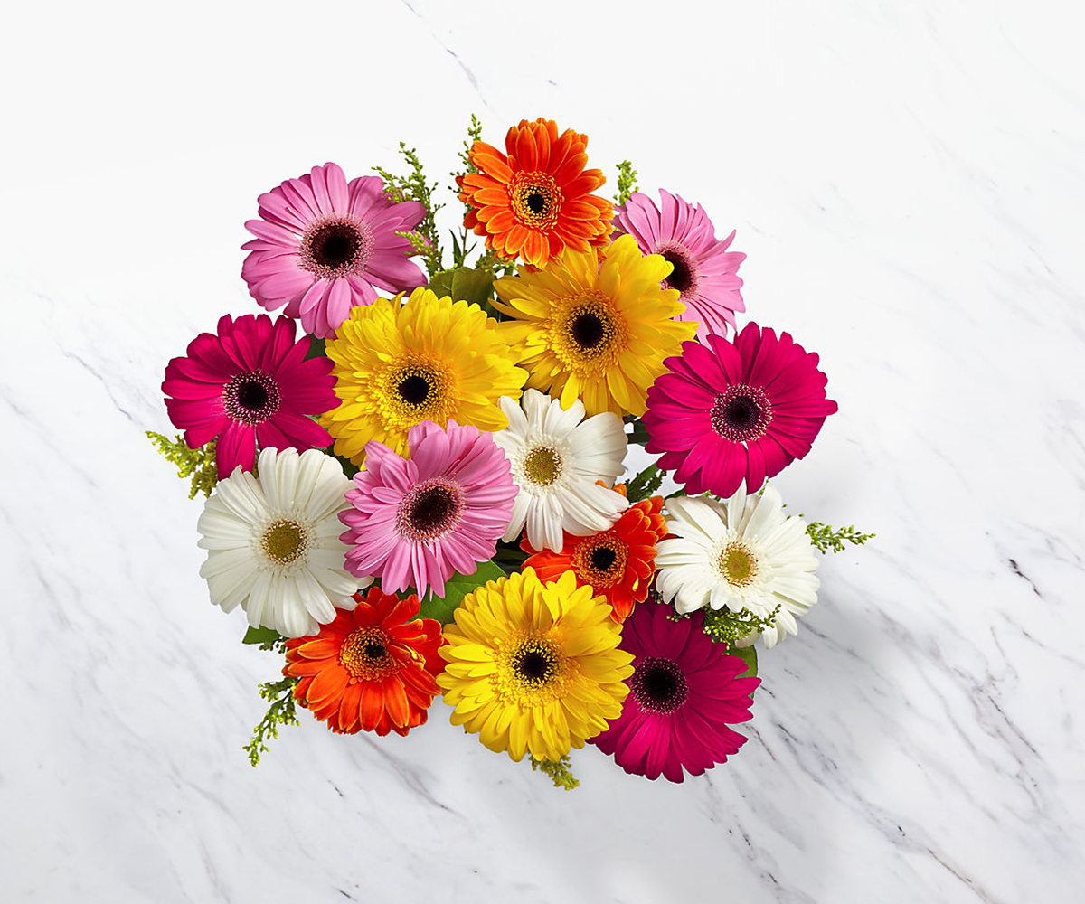 Hand gathered in select floral farms and showcasing a rainbow of color, including red, yellow, pink, white, and orange, this simply beautiful flower arrangement has been picked fresh for you to bring fun and excitement to their next birthday celebration, to offer you congratulations wishes, or as an inspiring way to send your get well sentiments. This bouquet includes the following: an assortment of gerbera daisies. Available with a selection of vases to fit your gifting needs. BETTER bouquet is approximately 16"H x 12"W.