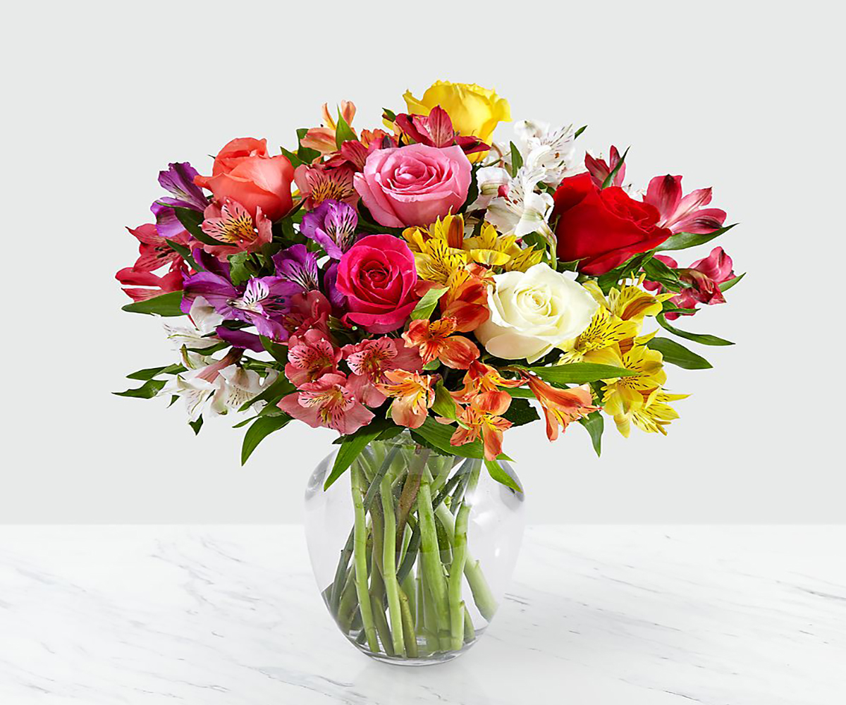 Hand gathered in select floral farms, boasting an array of bright colors. This stunning flower arrangement has been picked fresh for you to help you celebrate a birthday, anniversary, or express your thank you or get well wishes. Available with a selection of vases to fit your gifting needs. BEST bouquet includes 30 stems and is approximately 18-inches in height.