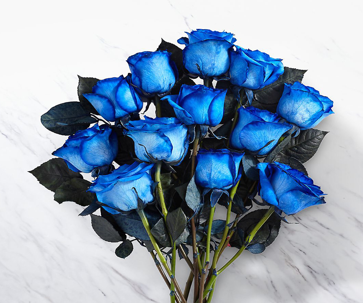 Hand gathered at select floral farms, these bright blue hand-dyed roses offer an eye-catching look intense color to create a unique bouquet, picked fresh for you to turn any celebration into an extraordinary time, making it the perfect birthday, Father's Day, or thank you gift. Bouquet includes: hand-dyed blue roses. Available with a blue glass vase. BETTER bouquet includes 11 stems with blue vase. Approximately 19"H x 14"W.!